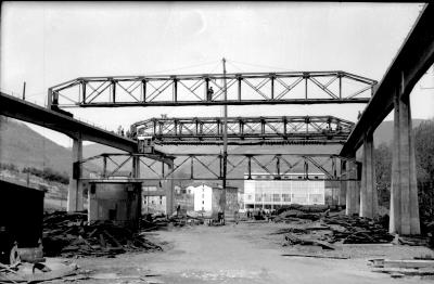 Obras de elevación de trozos de la grua del nuevo parque de chatarra de Unión Cerrajera |