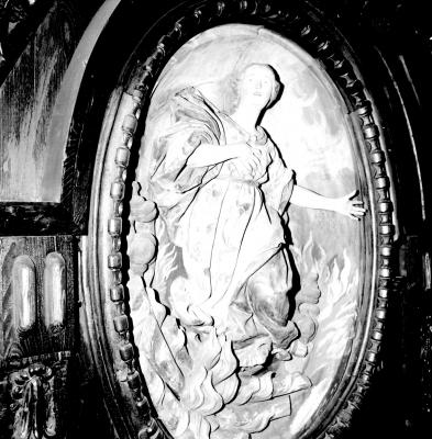 | Medalla en relieve del martirio de Santa Marina en el retablo mayor de la iglesia de Santa Marina |