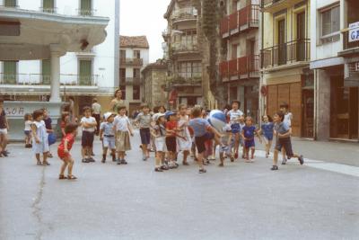 Grupo de niños de la ikastola Aranzadi jugando en la plaza principal de Zarautz |