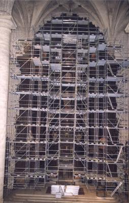 El retablo mayor de la iglesia de Santa Marina cubierta de andamios | 98-XI-2 [ms.v.] |