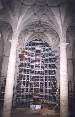 El retablo mayor de la iglesia de Santa Marina cubierta de andamios | 98-XI-2 [ms.v.] |