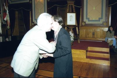 50 aniversario de la revista literaria EGAN y homenaje a José Antonio Zabala Unzurrunzaga en el Centro Municipal de Plenos: el Alcalde de Bergara entrega un homenaje a la viuda de J.A. Zabala |
