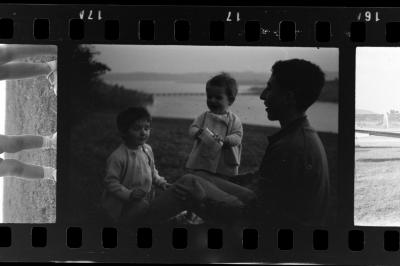 Niño y dos niñas jugando. Al fondo un embalse | Asialditxa - vistas del avión |