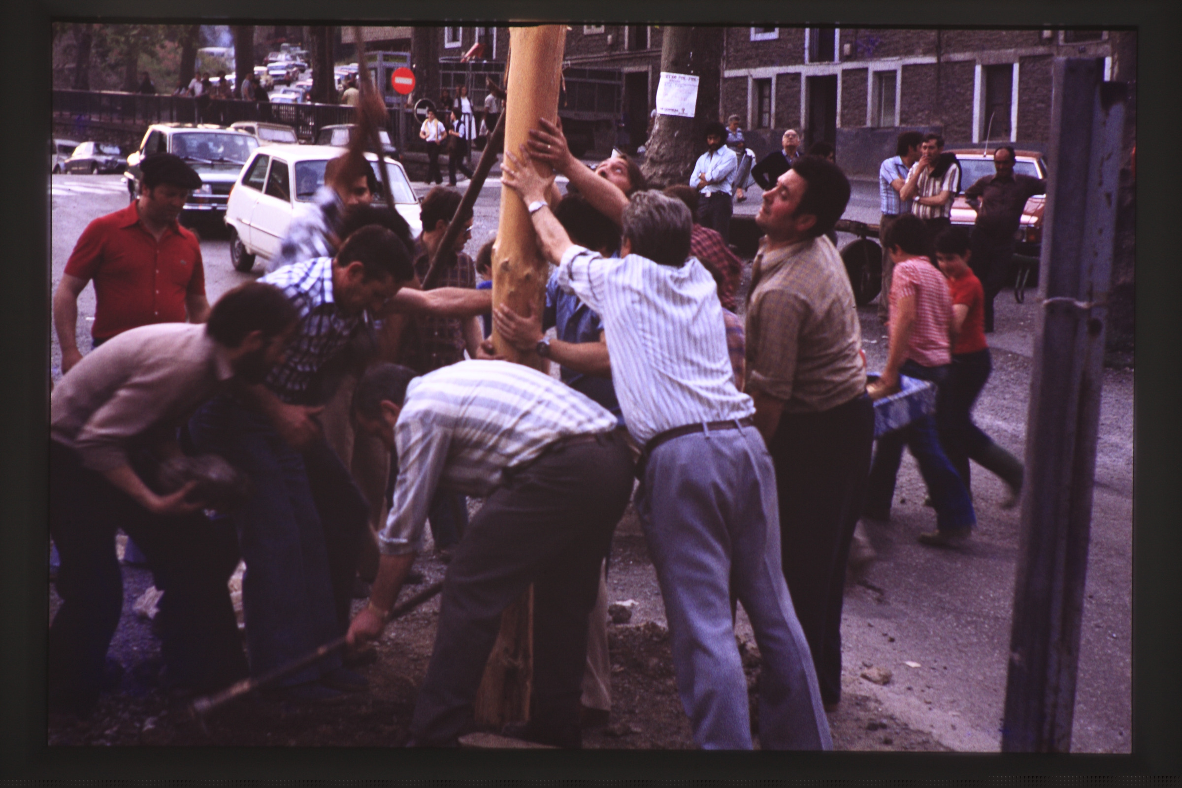 | Colocando el árbol para las fiestas de San Antonio |