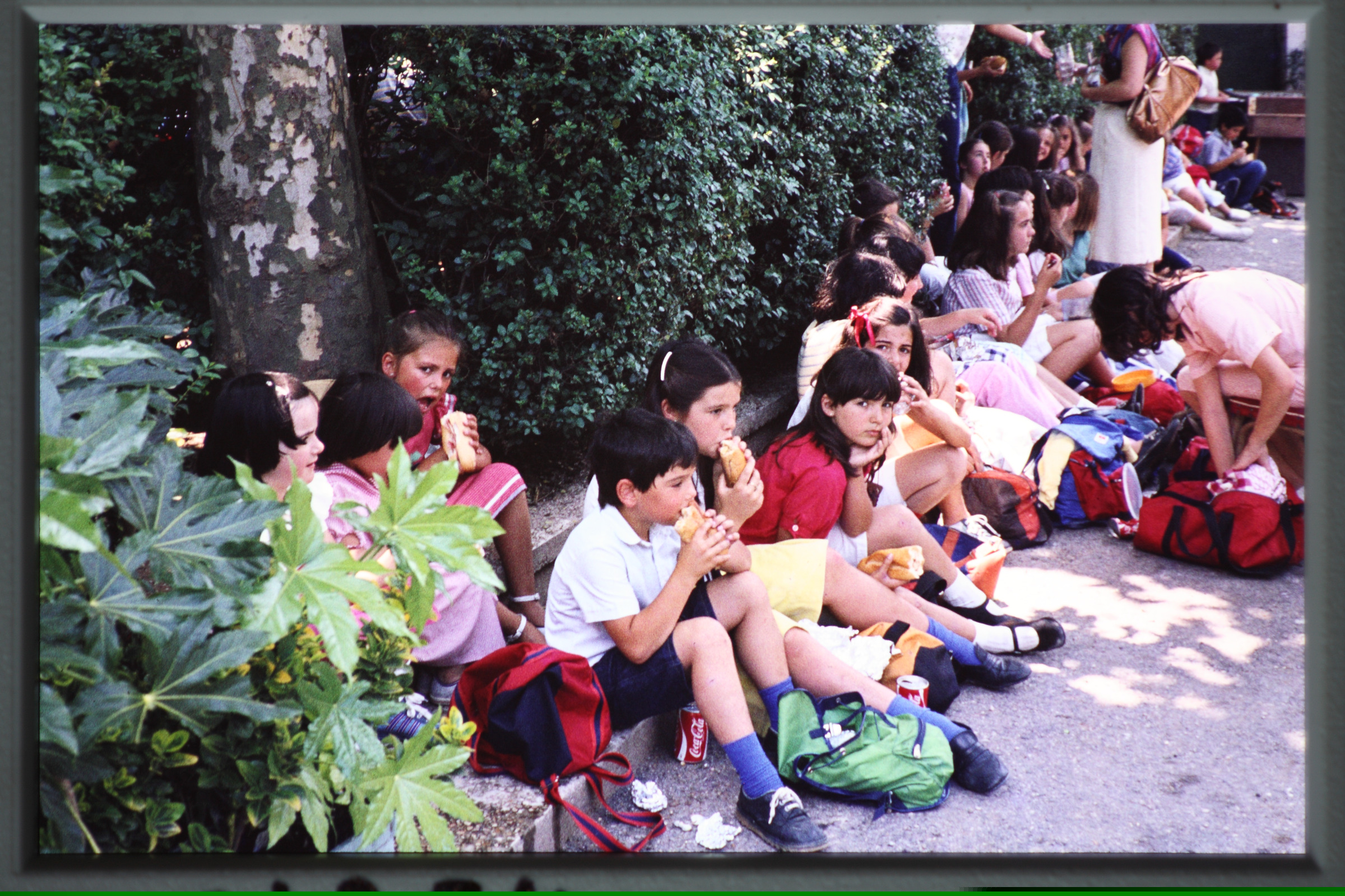 | En Barbotegi. Excursión de catequesis a Donostia: comiendo un bocadillo |