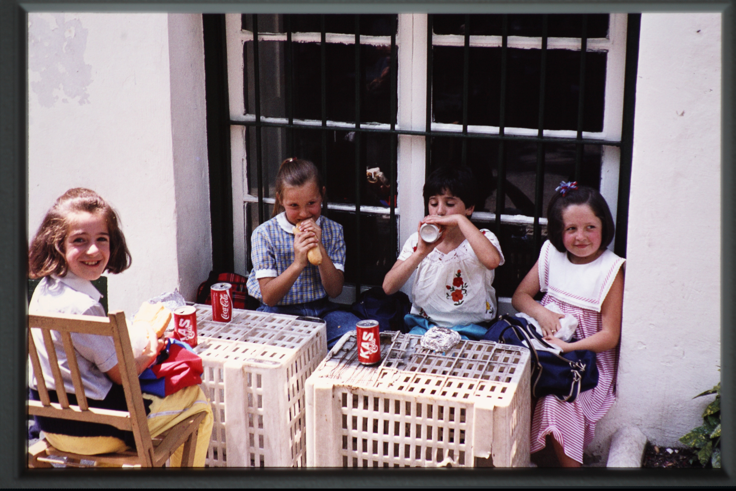 | En Barbotegi. Excursión de catequesis a Donostia: comiendo un bocadillo |