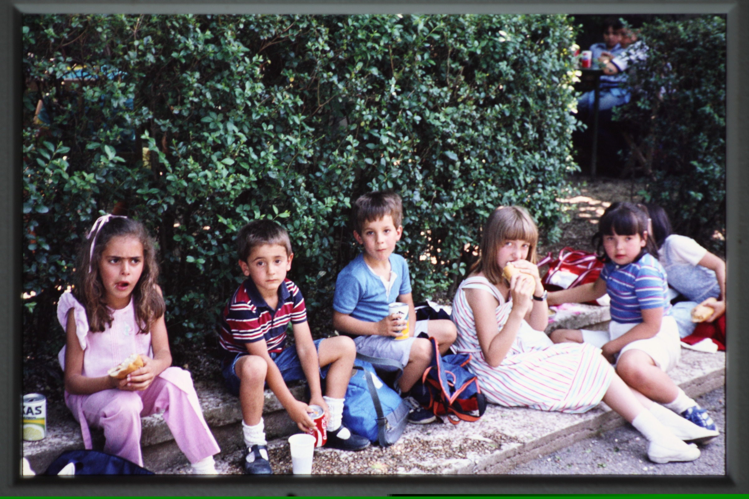 | En Barbotegi. Excursión de catequesis a Donostia: comiendo un bocadillo |