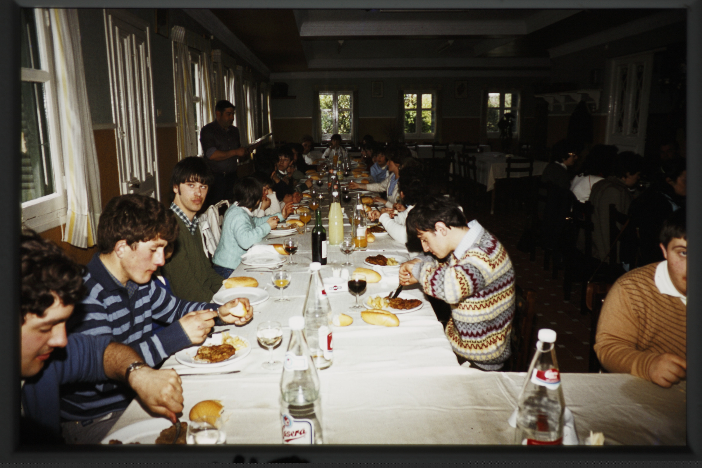 | Excursión de los niños y niñas del Patronato San Miguel a Igeldo. En un restaurante de la zona de San Sebastián comiendo |