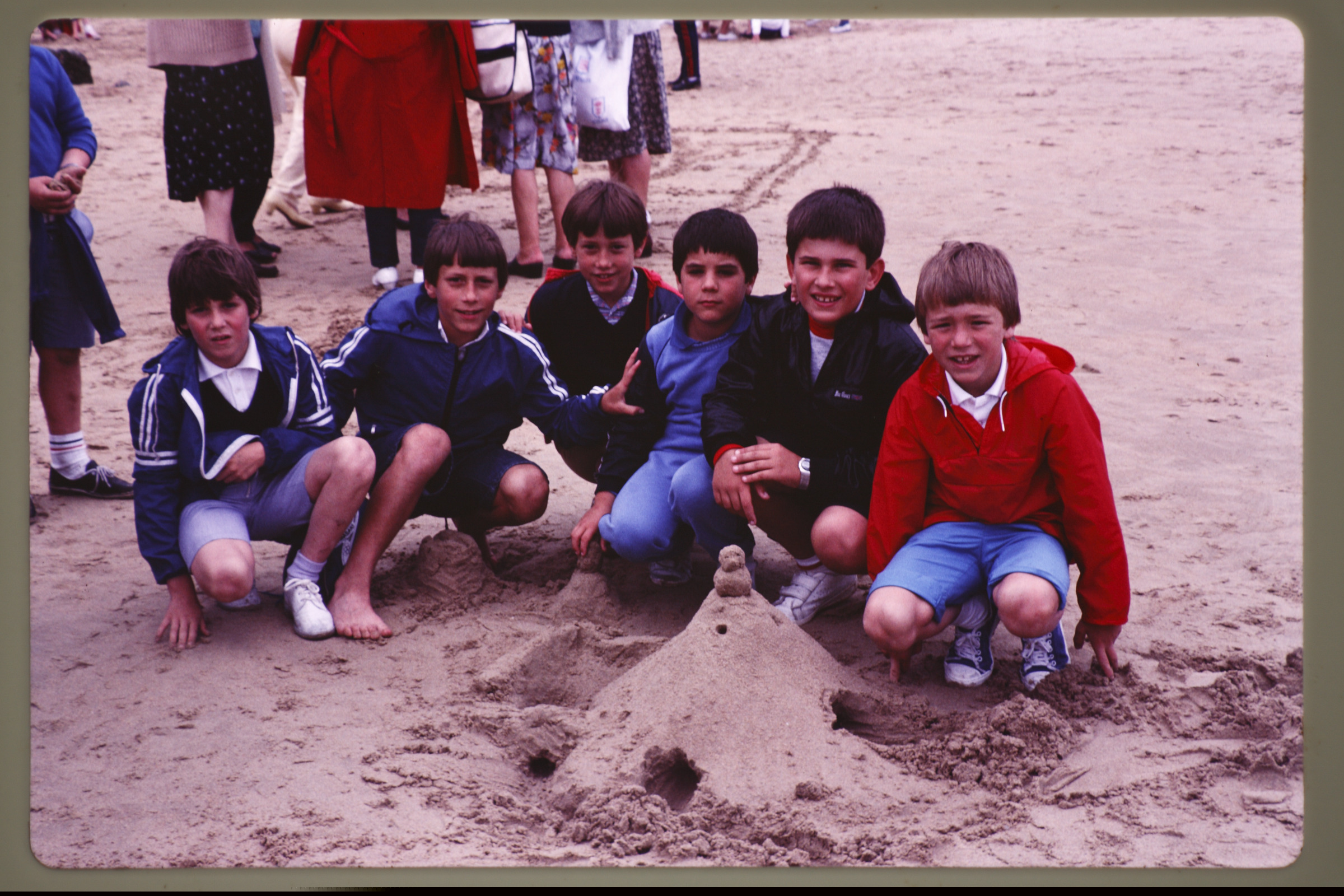 | En la playa de la Concha. Excursión a San Sebastián de la catequesis. |