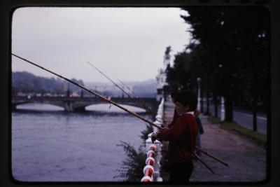 | Niños pescando en la calle República Argentina en San Sebastián | Lema-bakarrik V (ILEGIBLE) |