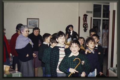 Grupo de niños que han visitado la residencia Mizpirualde, llevando el olentzero |