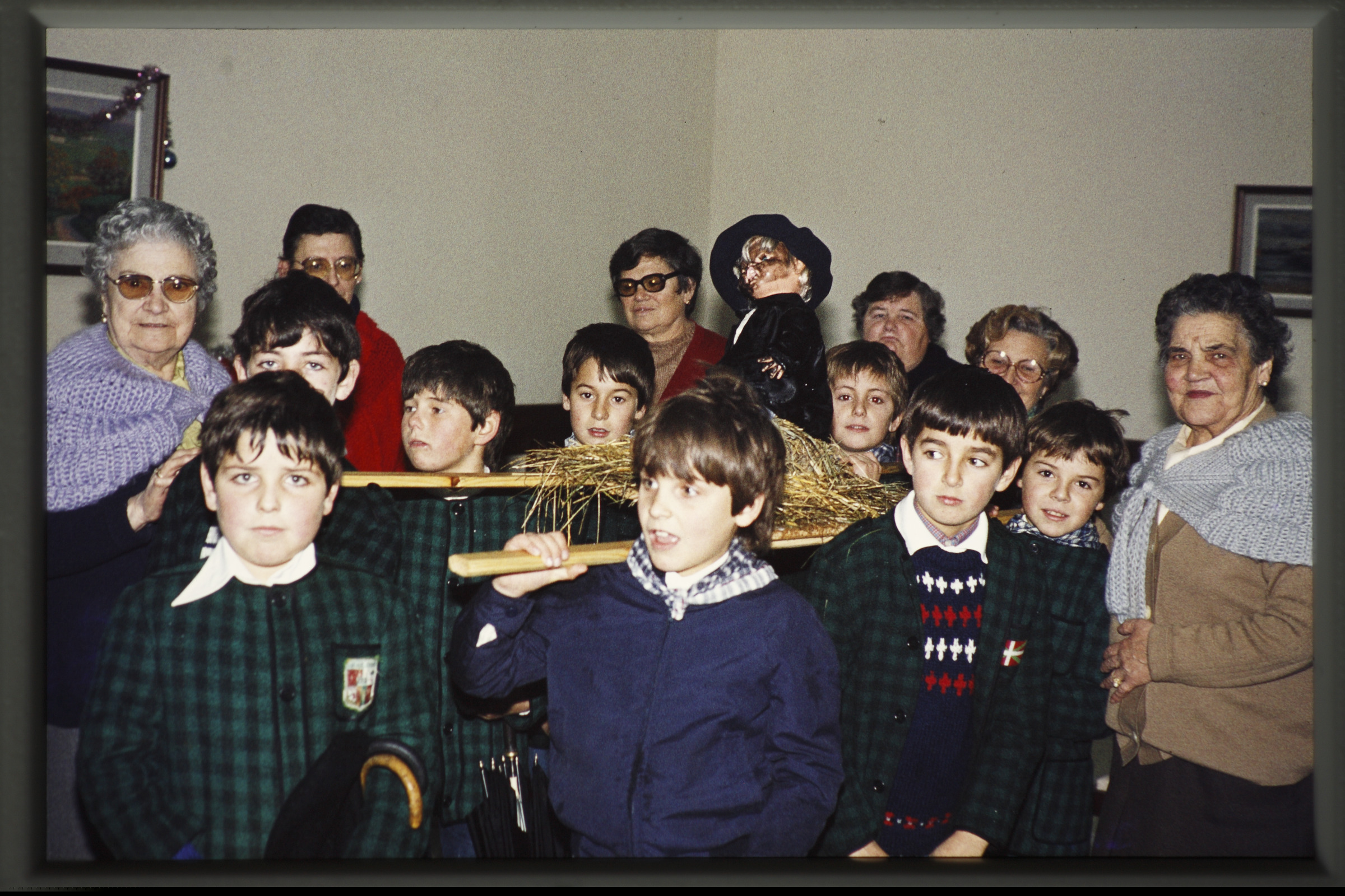 | Grupo de niños que han visitado la residencia Mizpirualde, llevando el olentzero |