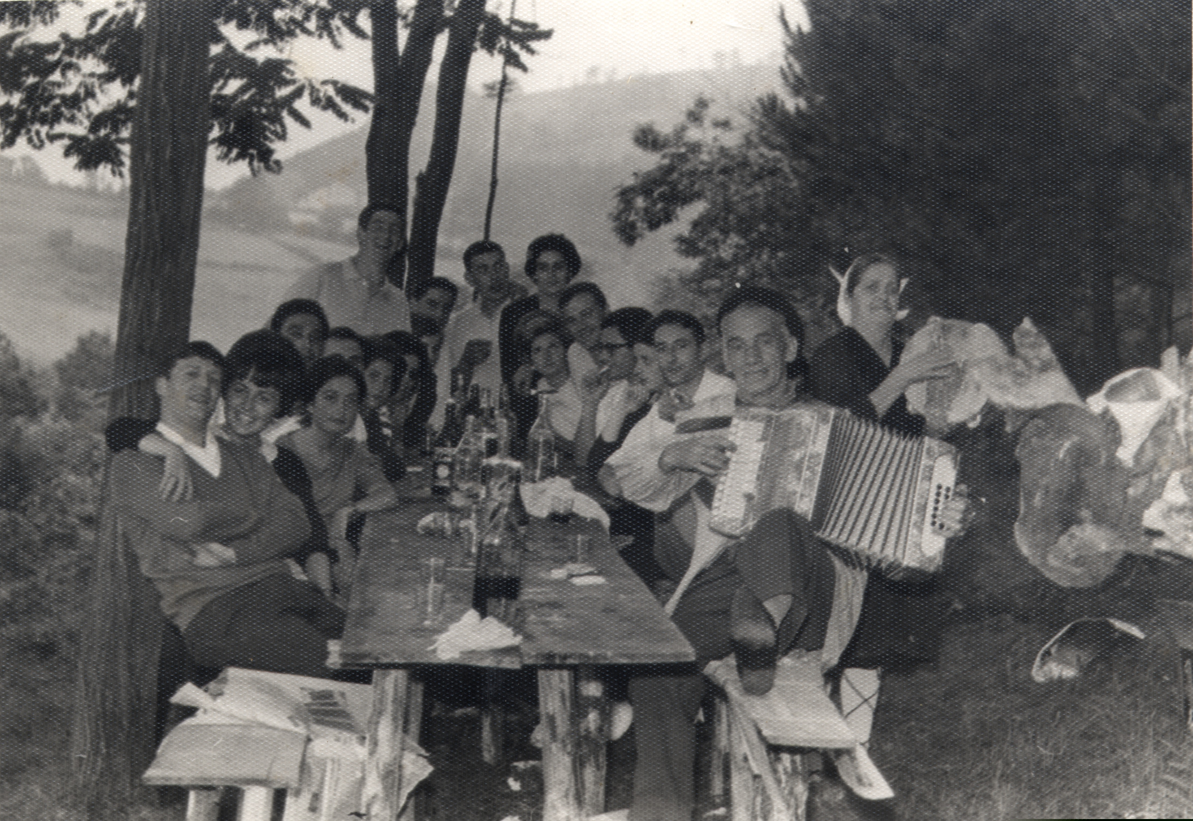 | Cuadrilla de amigos en la campa de San Marcial con trikitilaris |