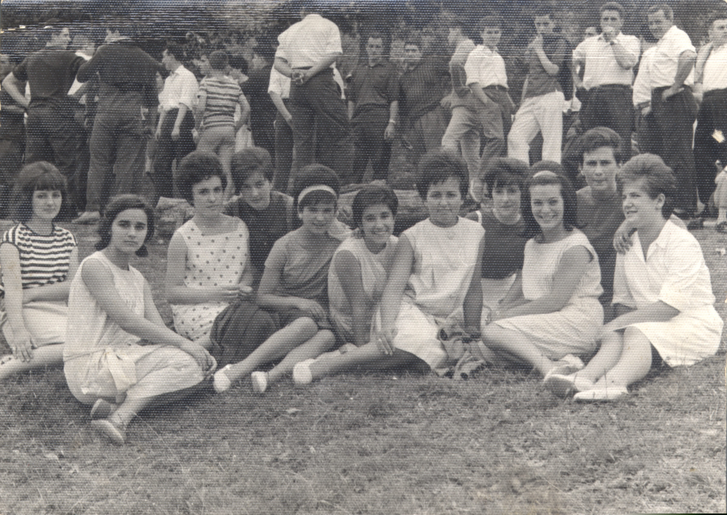 | Grupo de chicas en San Marcial | "José Fernández Fotógrafo San Antolín, 21 - 2º dcha. Mondragón (Guipúzcoa)" [imp. v.] "Año 1963 - San Marcial" [ms. v.] |