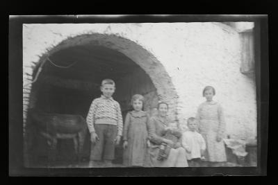 | Grupo frente al caserío. En segundo plano se puede ver un burro |