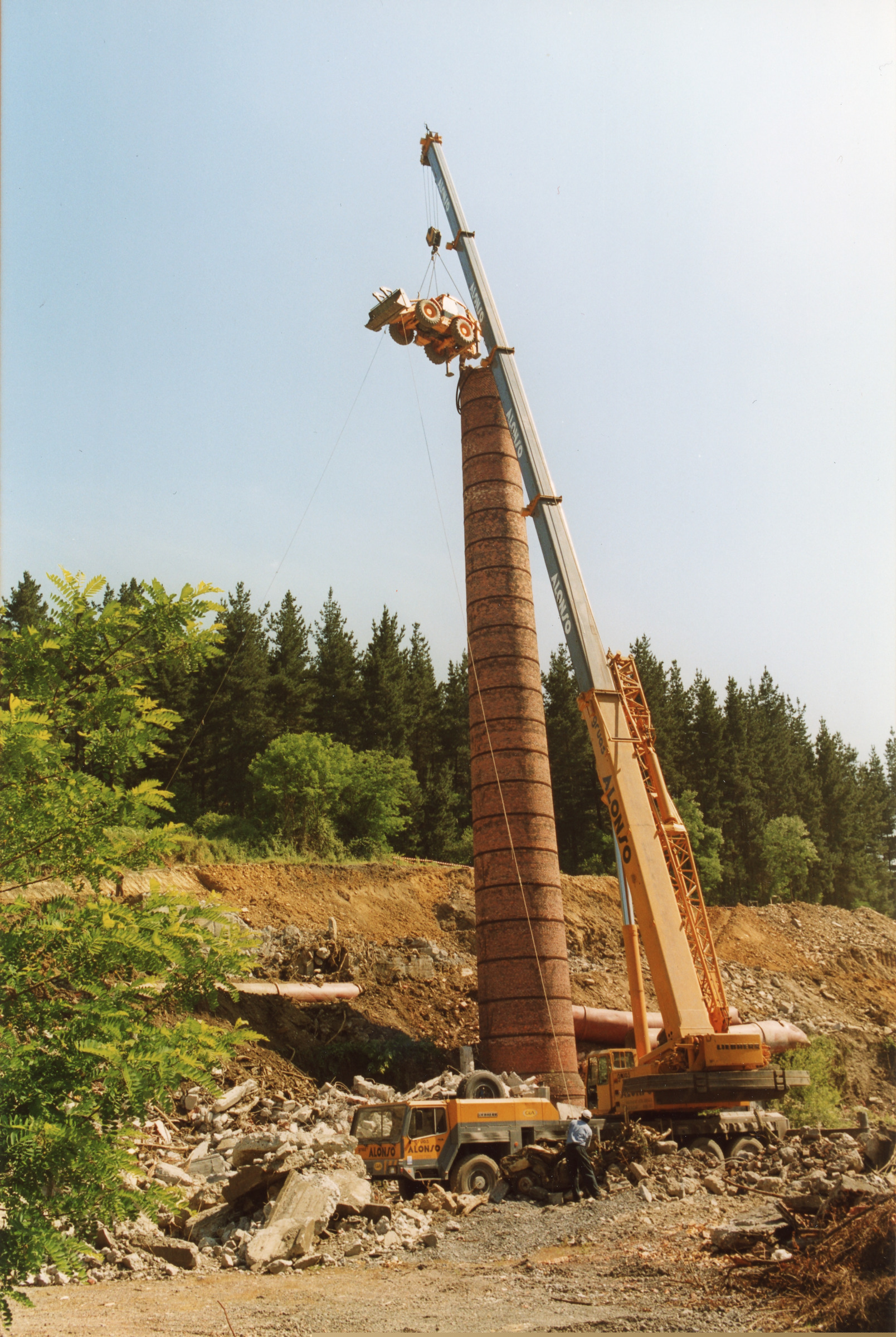 | Obras realizadas para derribar las chimeneas de la Cerrajera. |
