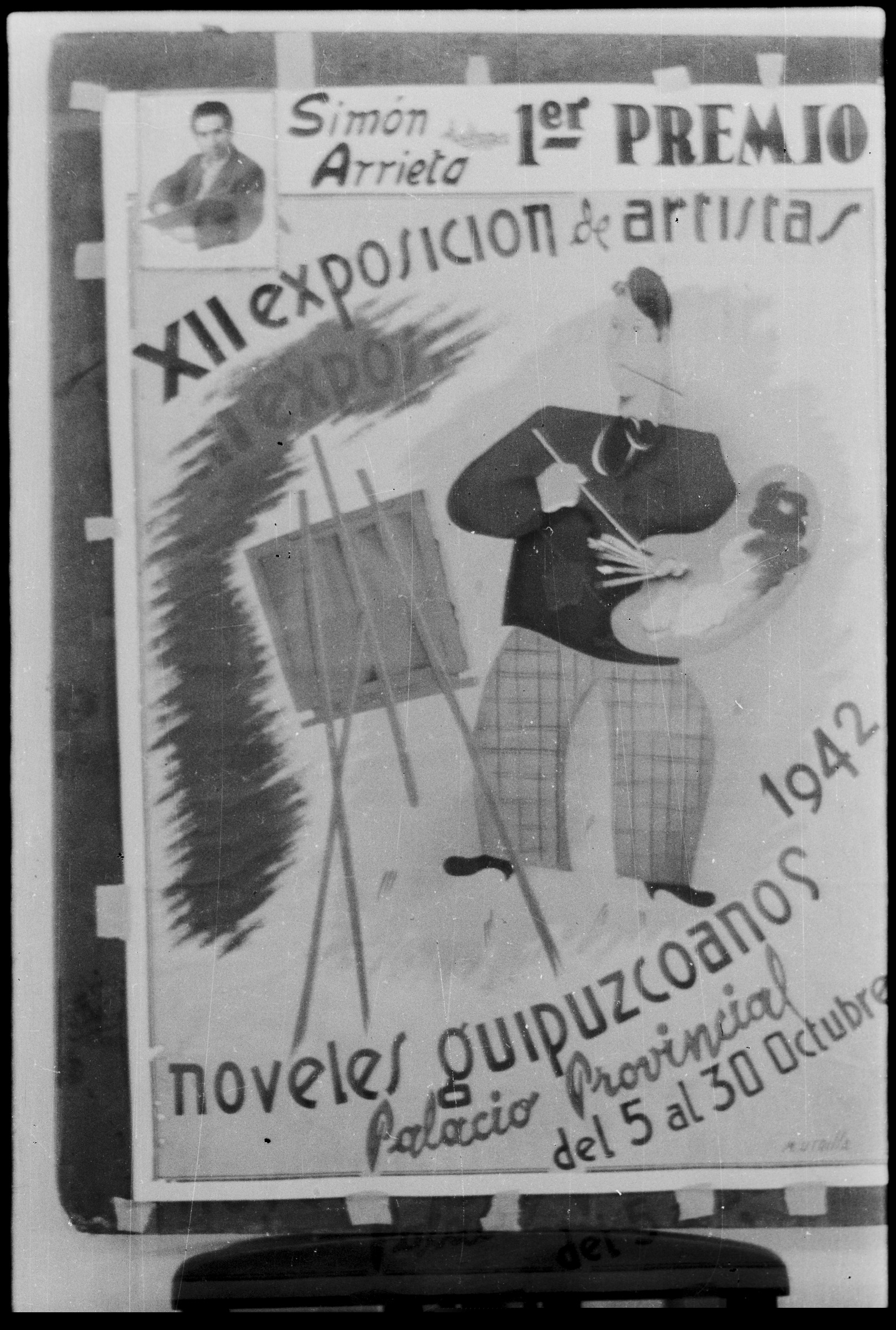 | Collage del primer premio recibido por Simón Arrieta en 1942 en la exposición de nuevos artistas de Gipuzkoa | Premio Simón Arrieta.- Cartel G. Ariño |