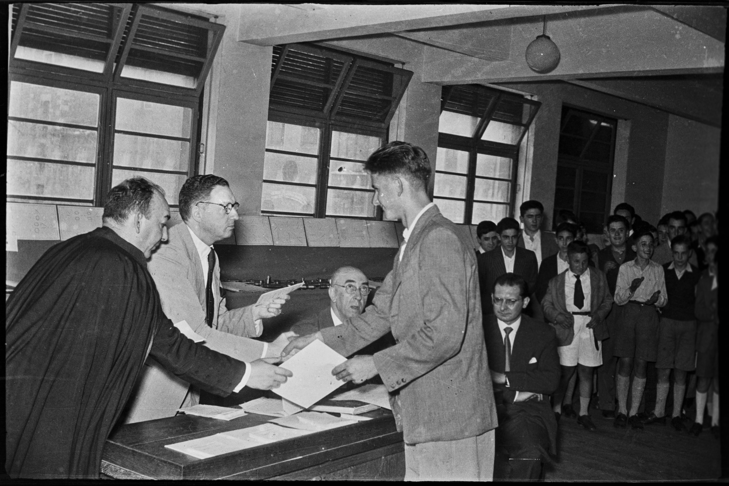 | Entrega de diplomas al alumnado del elemental | Escuela elemental 1955 |