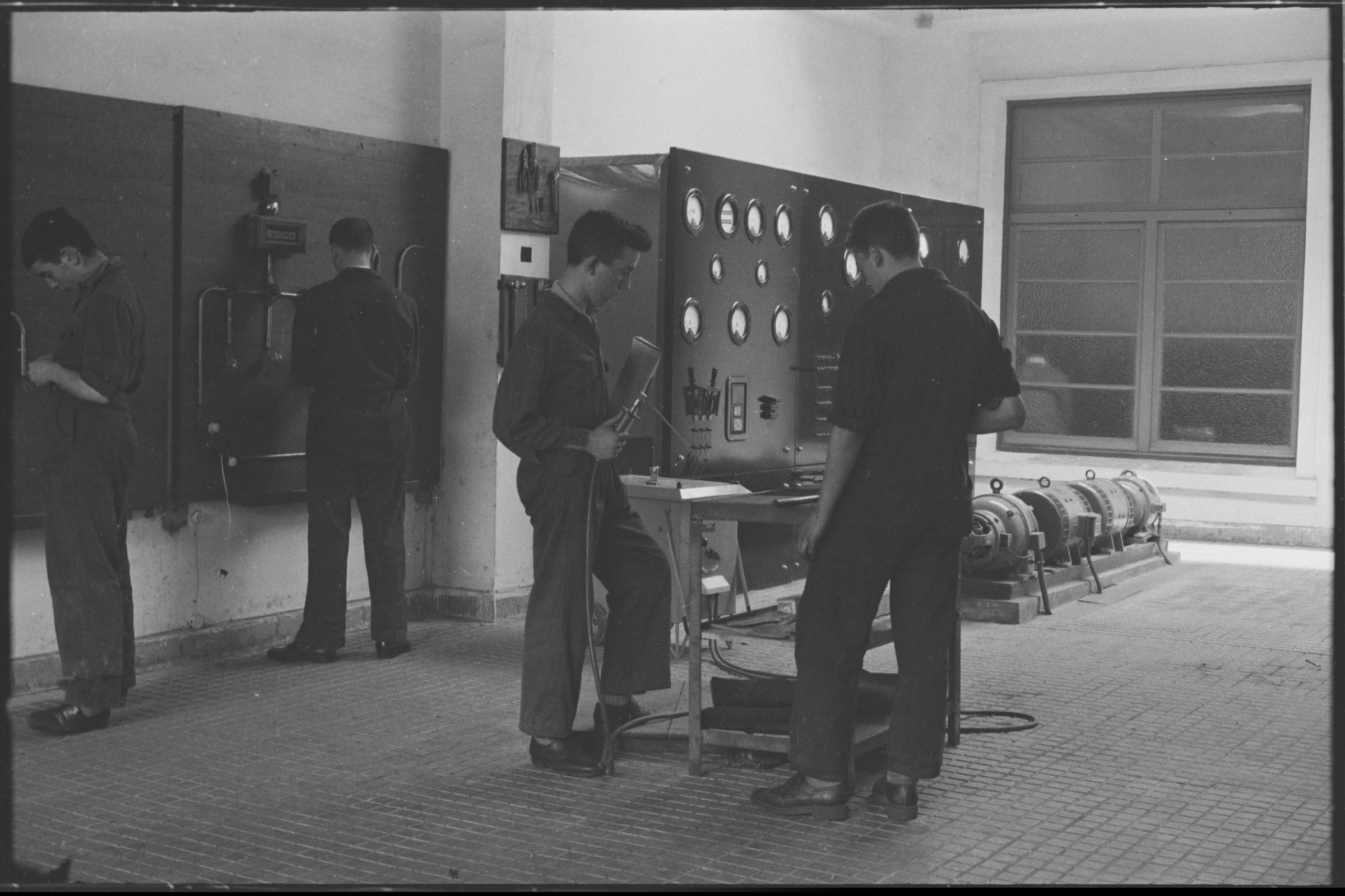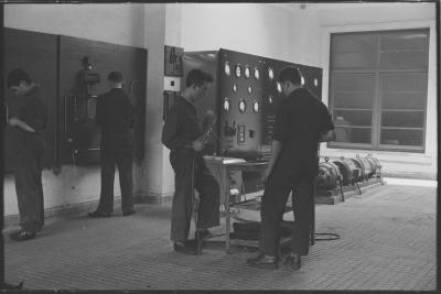 | Alumnos de eléctrico de la elemental en clase | Escuela elemental - Interiores - junio 1959 |
