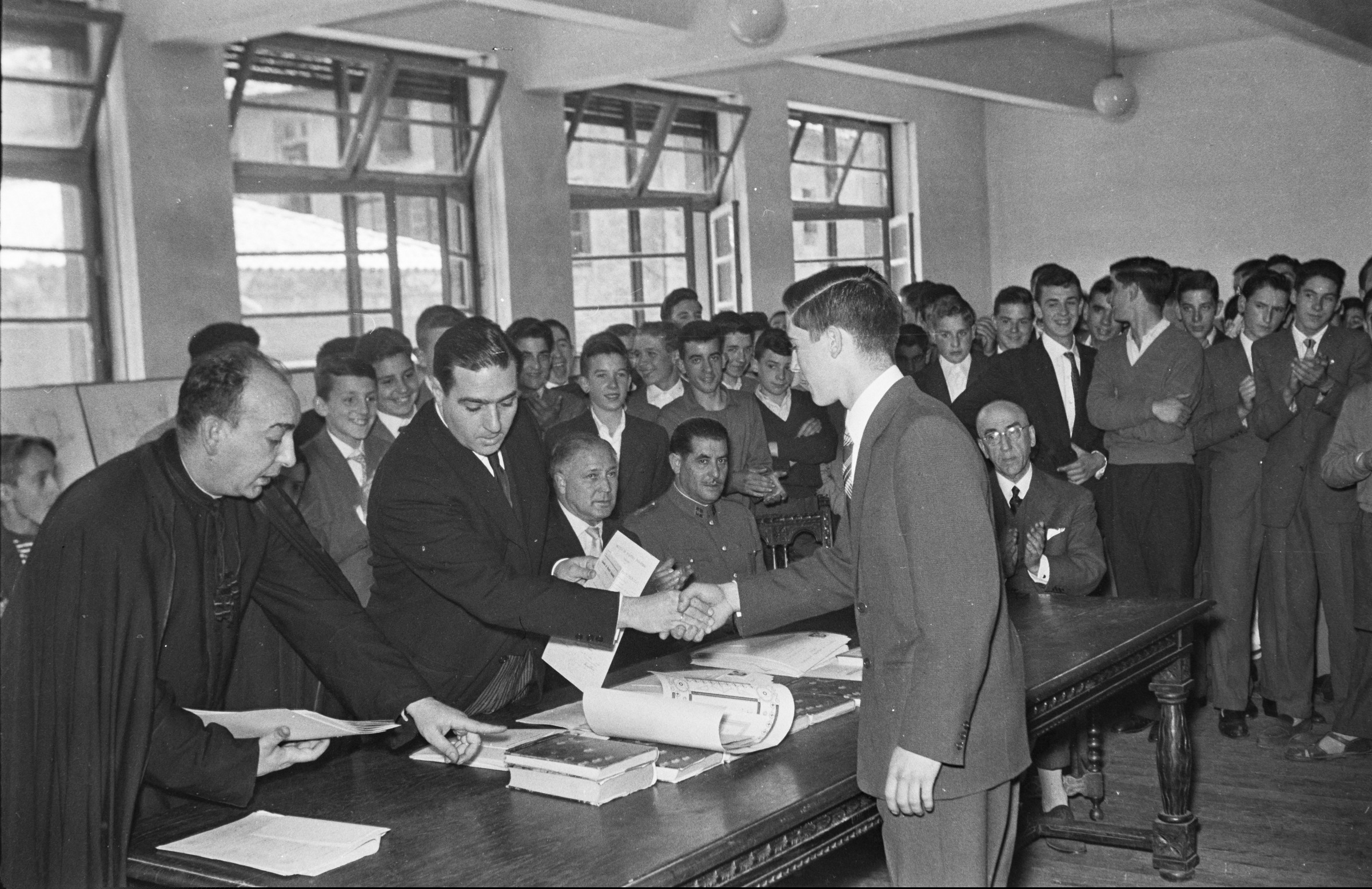 | Entrega de premios a los alumnos de la elemental | Escuela Elemental. Reparto premios 18 de julio 1958 |