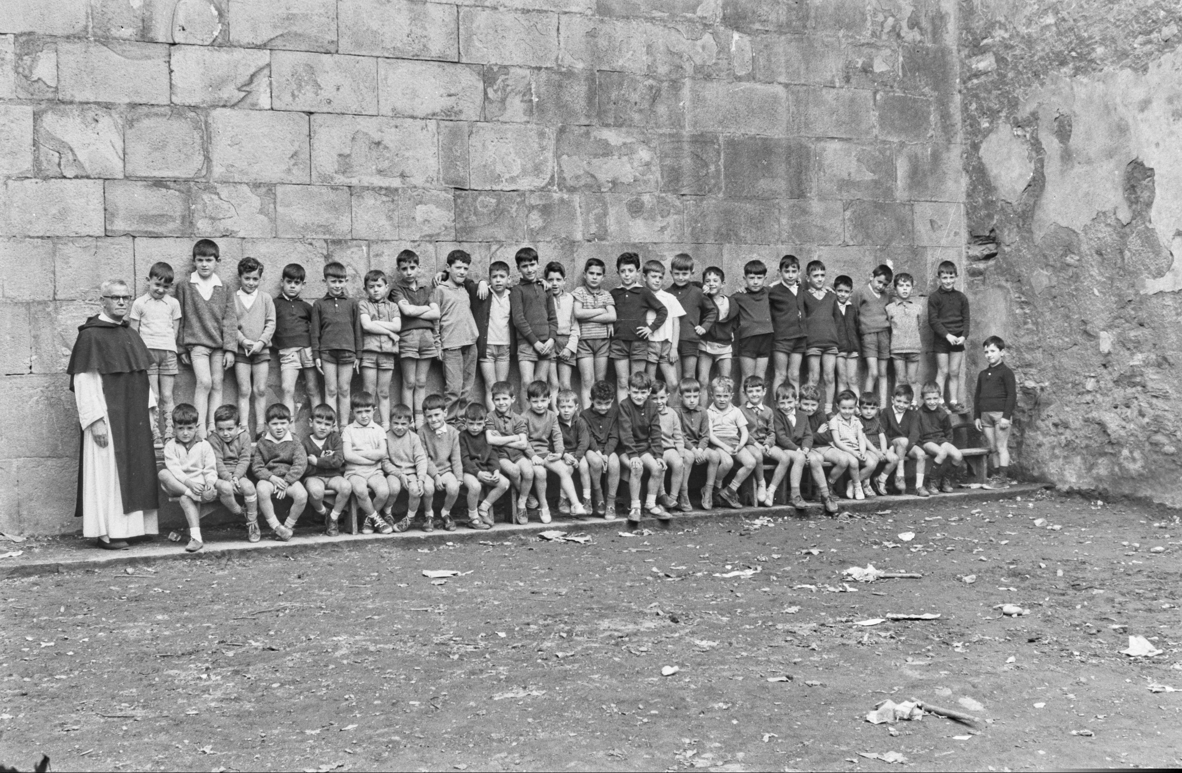 | Grupo de alumnos contra la pared del frontón del Seminario | Interiores iglesia y talleres Seminario abril 1963 |