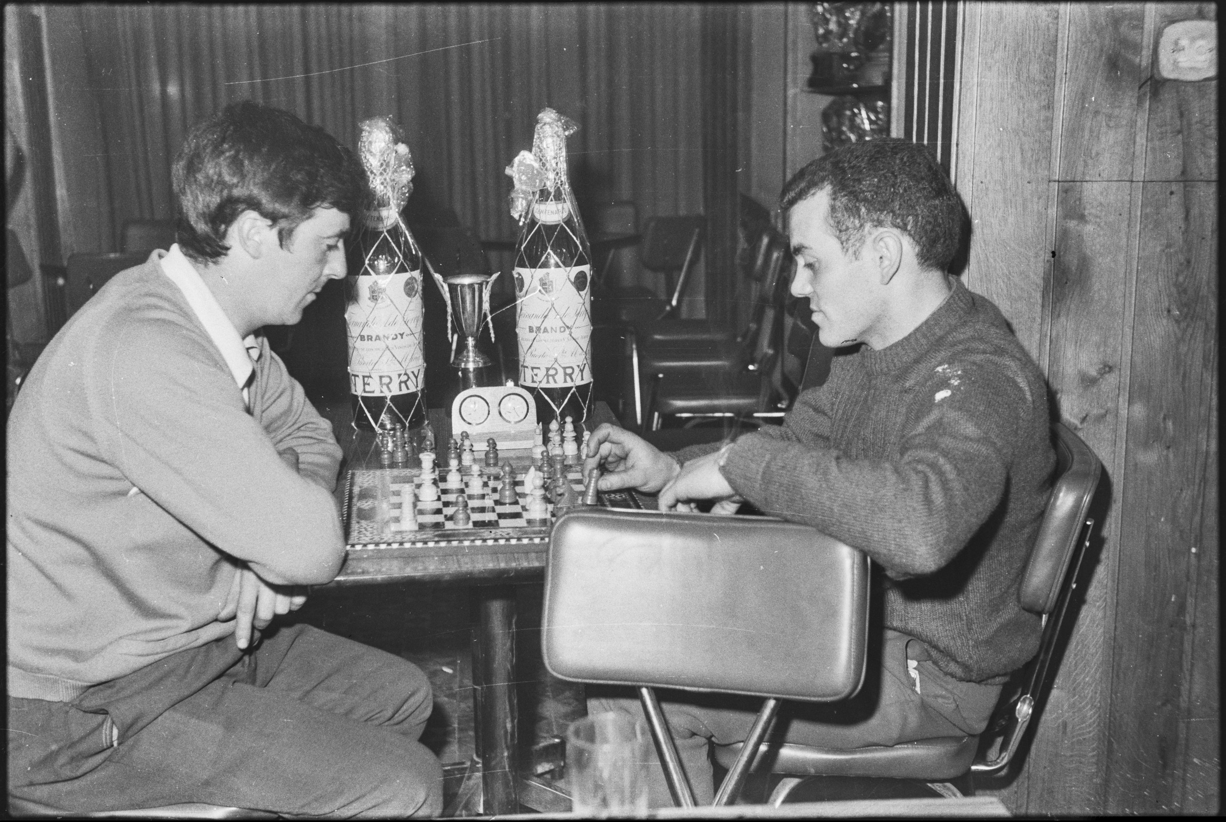 | Dos hombres sentados en la mesa jugando al ajedrez | Campeonato de ajedrez C.D.V. |
