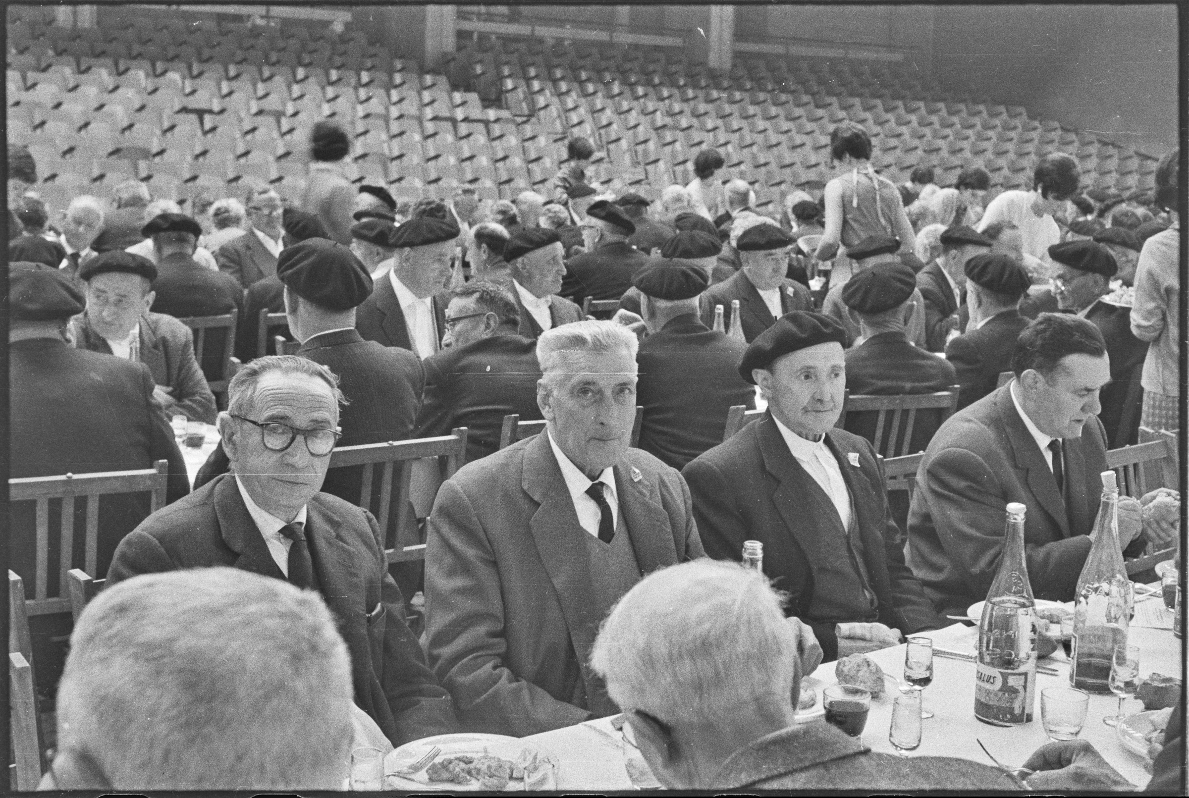 | Comida en el Frontón Municipal. Gente comiendo. | Jubilados - Del 1 al 63 30-abril-1967 |