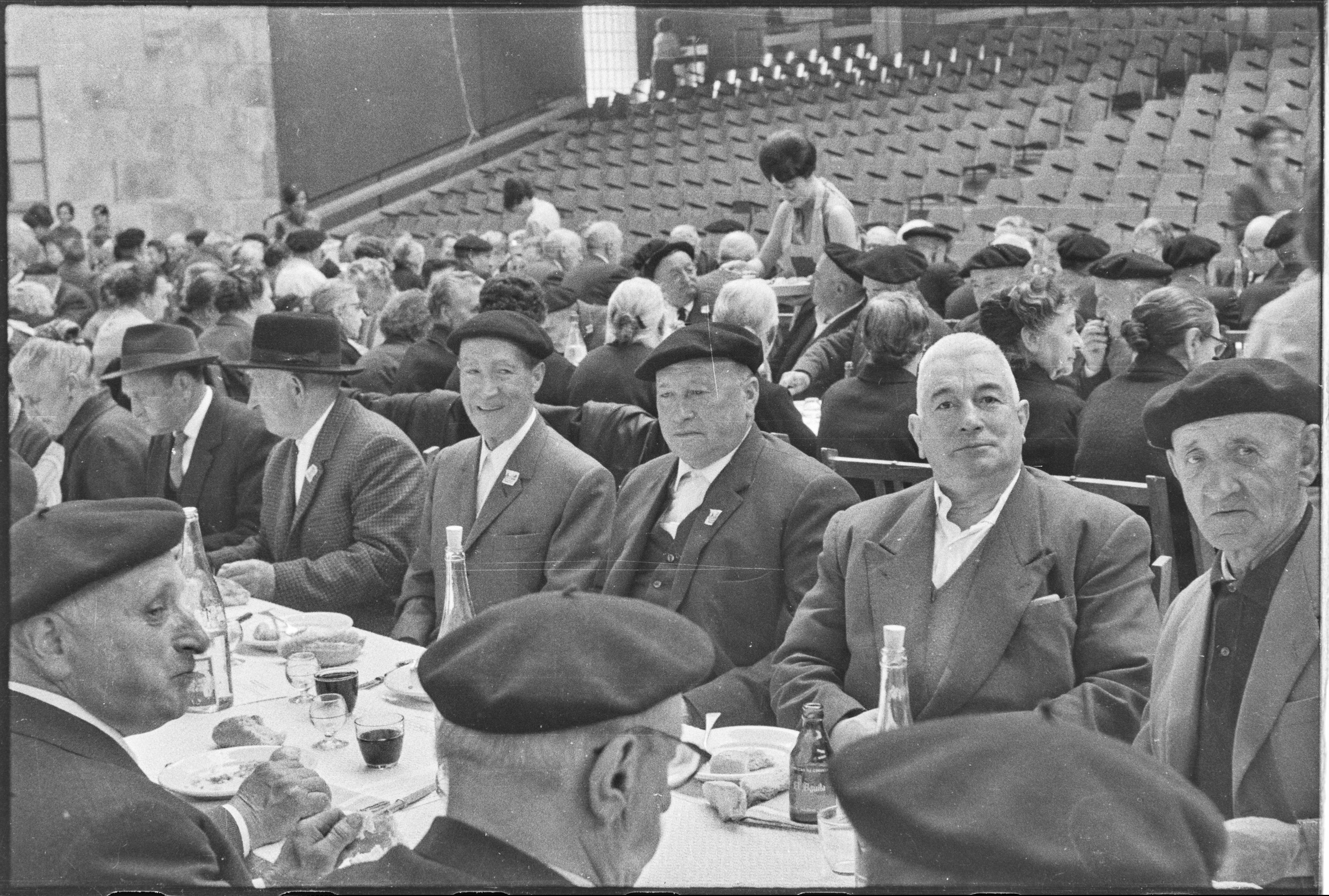 | Comida en el Frontón Municipal. Gente comiendo. | Jubilados - Del 1 al 63 30-abril-1967 |