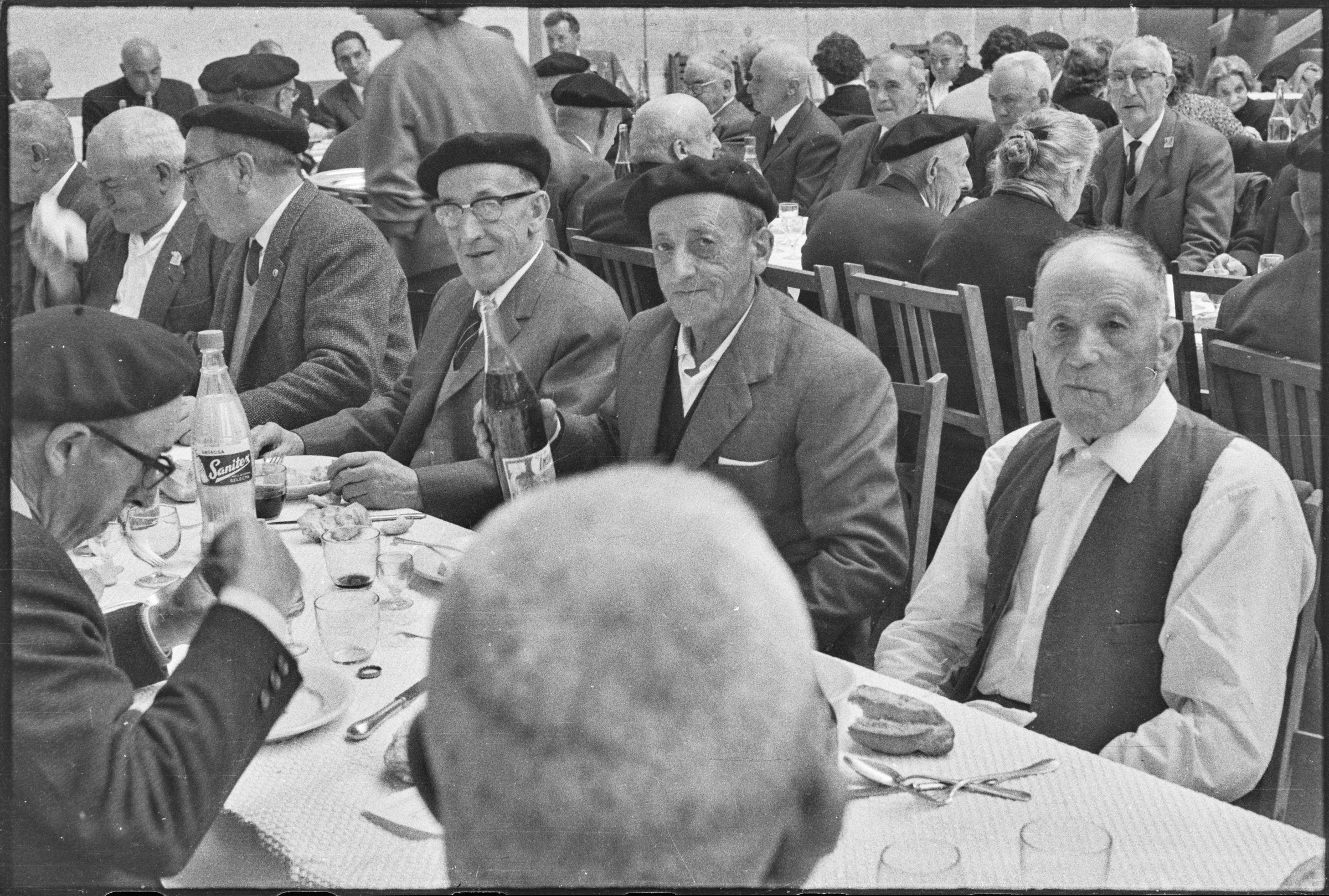 | Comida en el Frontón Municipal. Gente comiendo. | Jubilados - Del 1 al 63 30-abril-1967 |