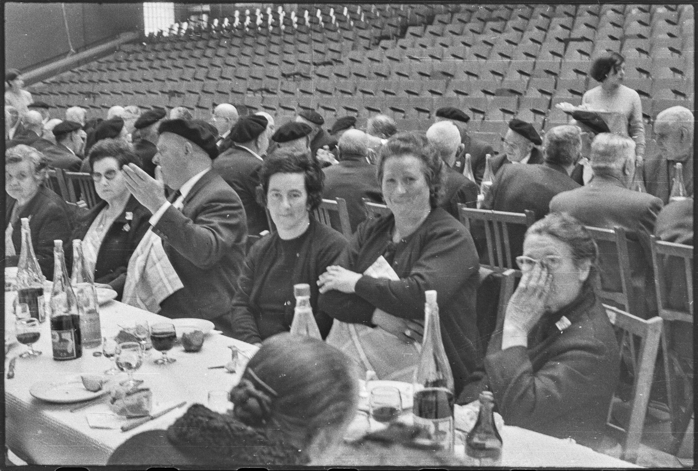 | Comida en el Frontón Municipal. Gente comiendo. | Jubilados - Del 1 al 63 30-abril-1967 |
