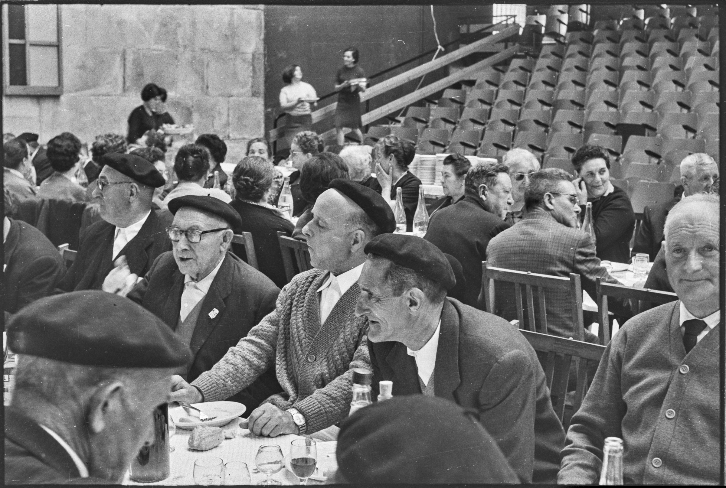 Comida en el Frontón Municipal. Gente comiendo. | Jubilados - Del 64 al 120 30-abril-1967 |
