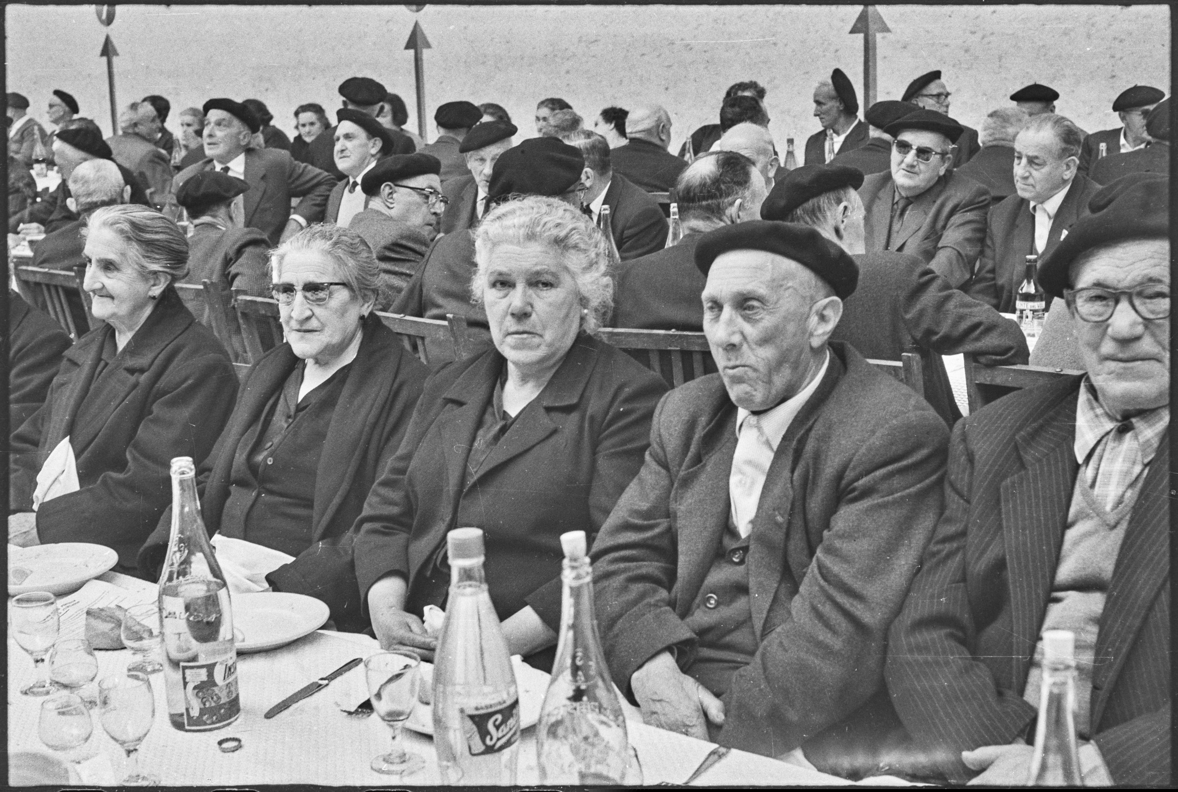 | Comida en el Frontón Municipal. Gente comiendo. | Jubilados - Del 64 al 120 30-abril-1967 |