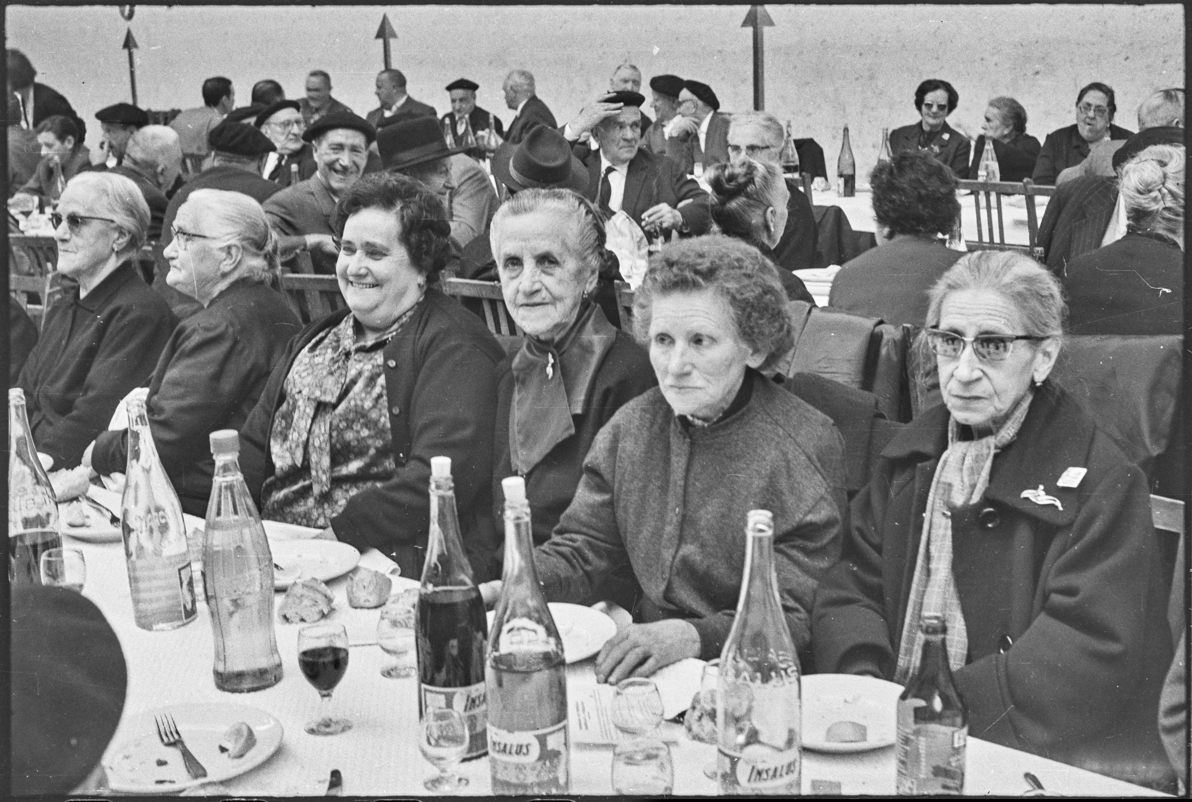 | Comida en el Frontón Municipal. Gente comiendo. | Jubilados - Del 64 al 120 30-abril-1967 |