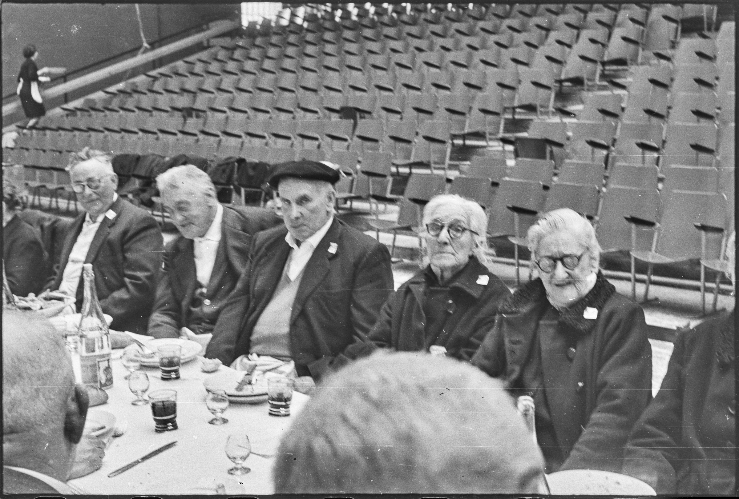 | Comida en el Frontón Municipal. Gente comiendo. | Jubilados - Del 64 al 120 30-abril-1967 |
