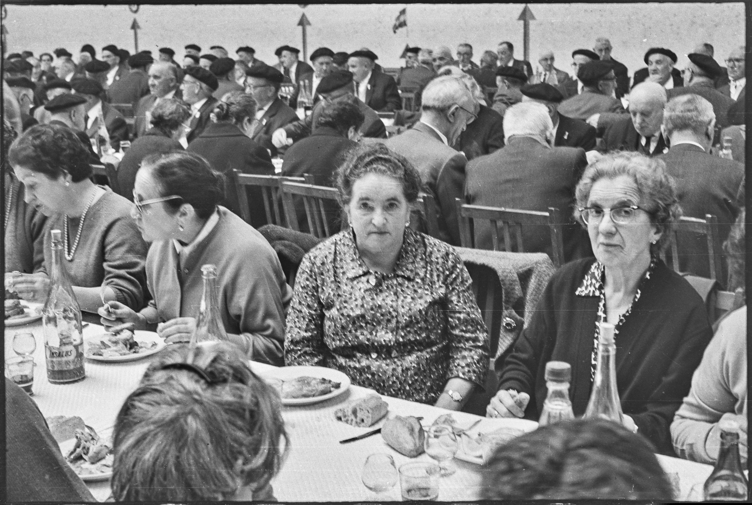| Comida en el Frontón Municipal. Gente comiendo. | Jubilados - Del 64 al 120 30-abril-1967 |