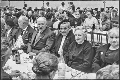 | Comida en el Frontón Municipal. Gente comiendo. | Jubilados - Del 64 al 120 30-abril-1967 |
