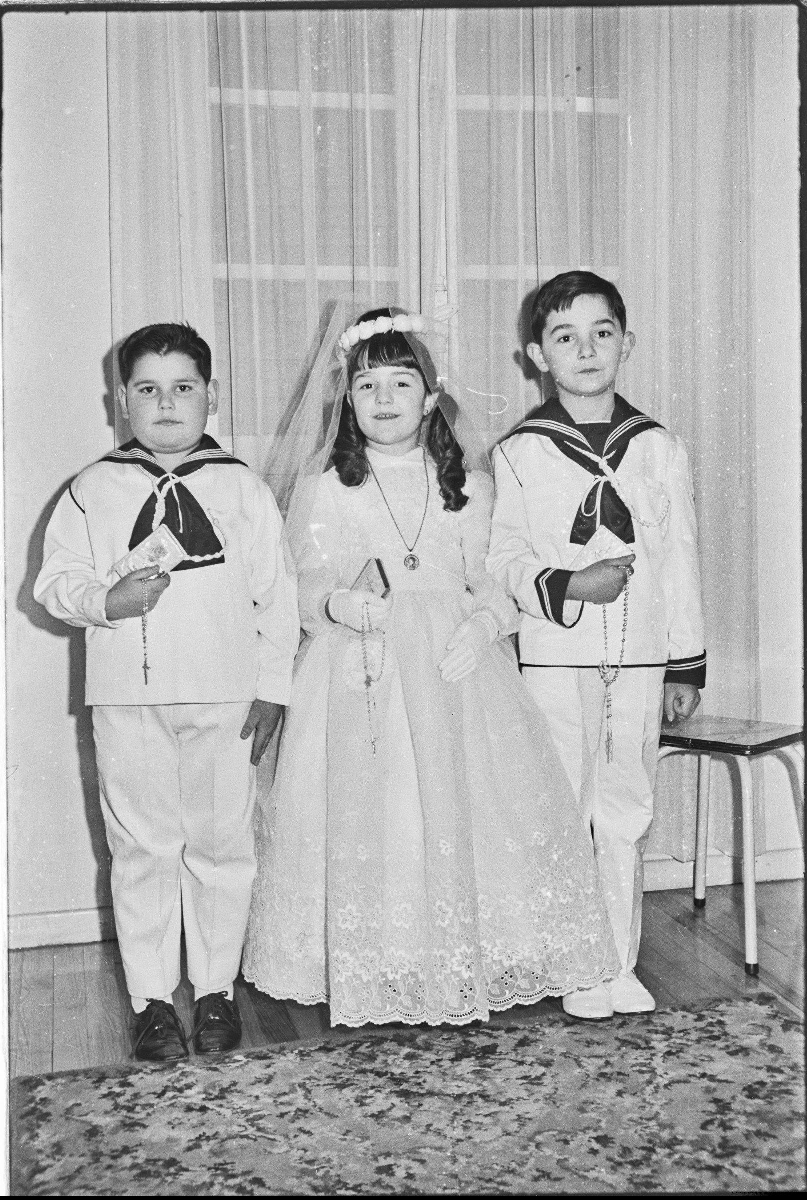 Una niña y dos niños vestidos de primera comunión | Comuniones 1968 |
