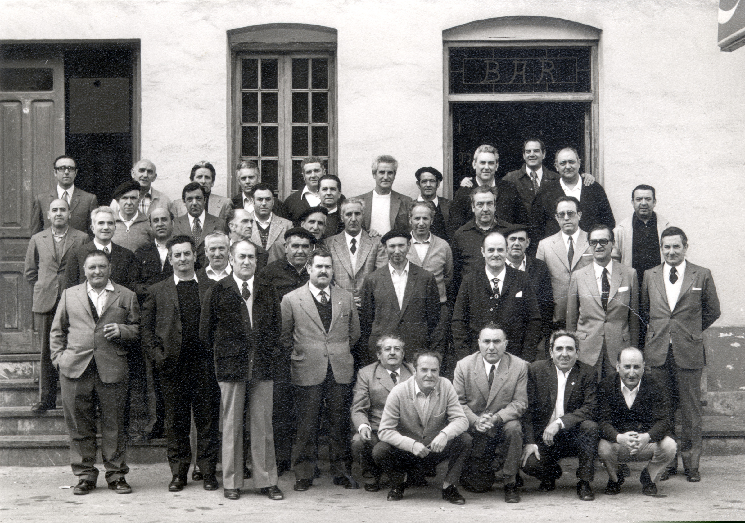 Grupo de hombres frente al restaurante Zabala. Quintos de 1944 |
