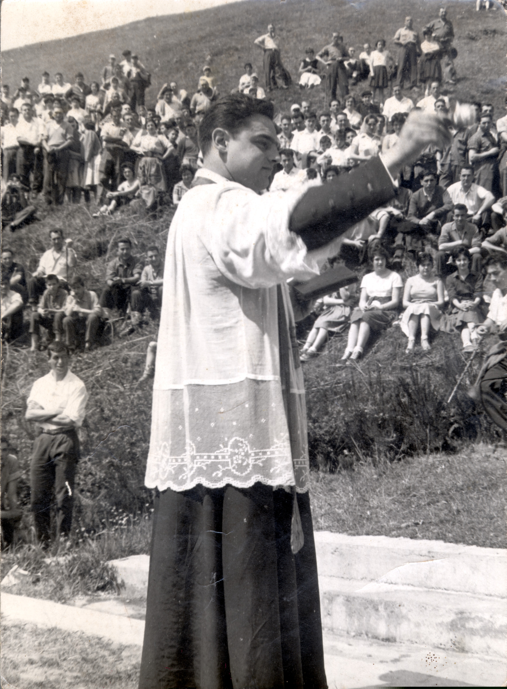 | El cura bendice la fuente. Inauguración fuente Pol-Pol |