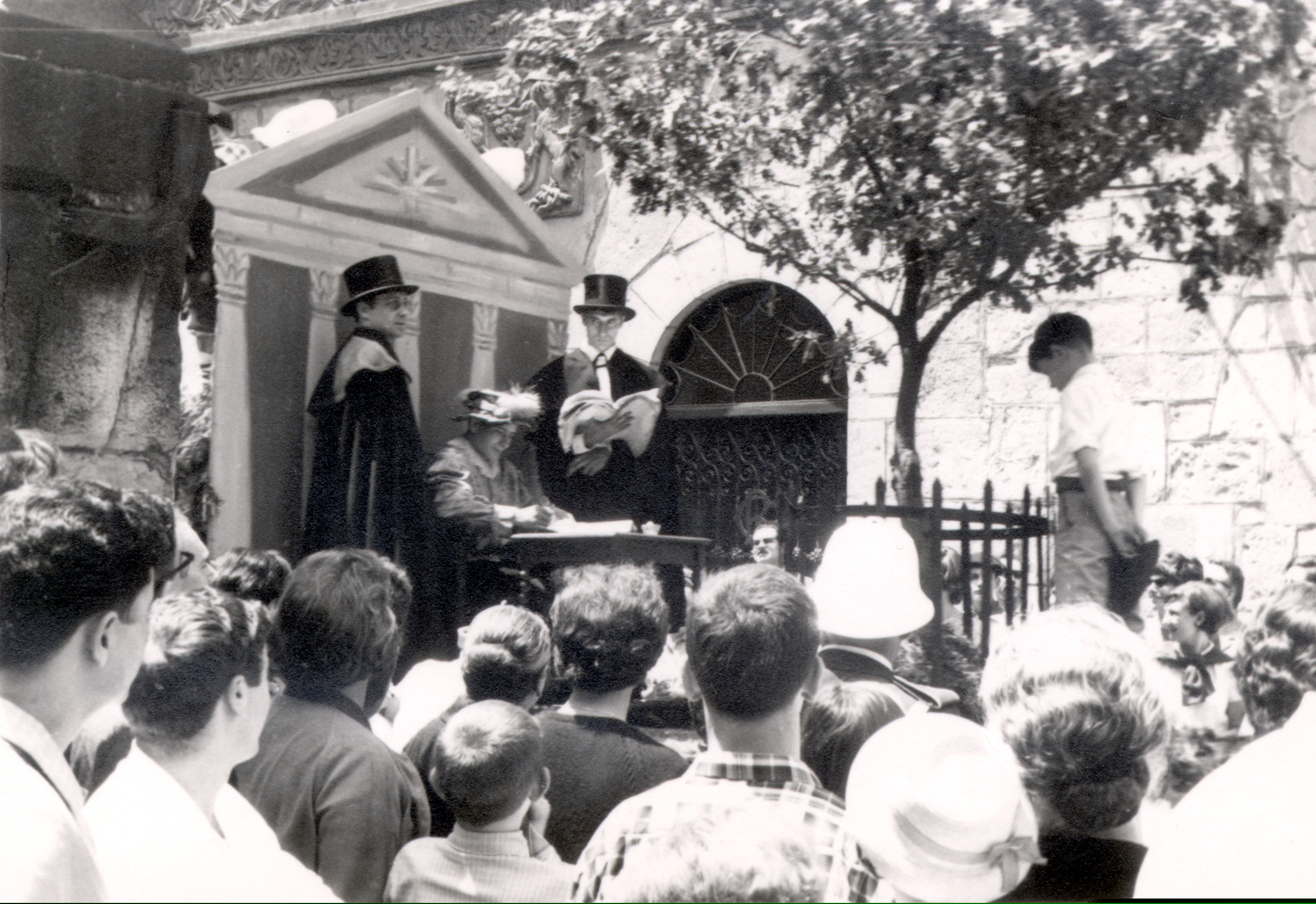 | Un chico acata a los que están sobre el escenario. ¿El árbol de Gernika? |