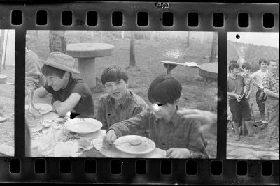 | II Marcha montañera medida del Pol Pol: participantes en el comiendo en el exterior de la sociedad Gorla. | Marcha Regulada Pol-Pol II |