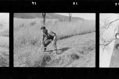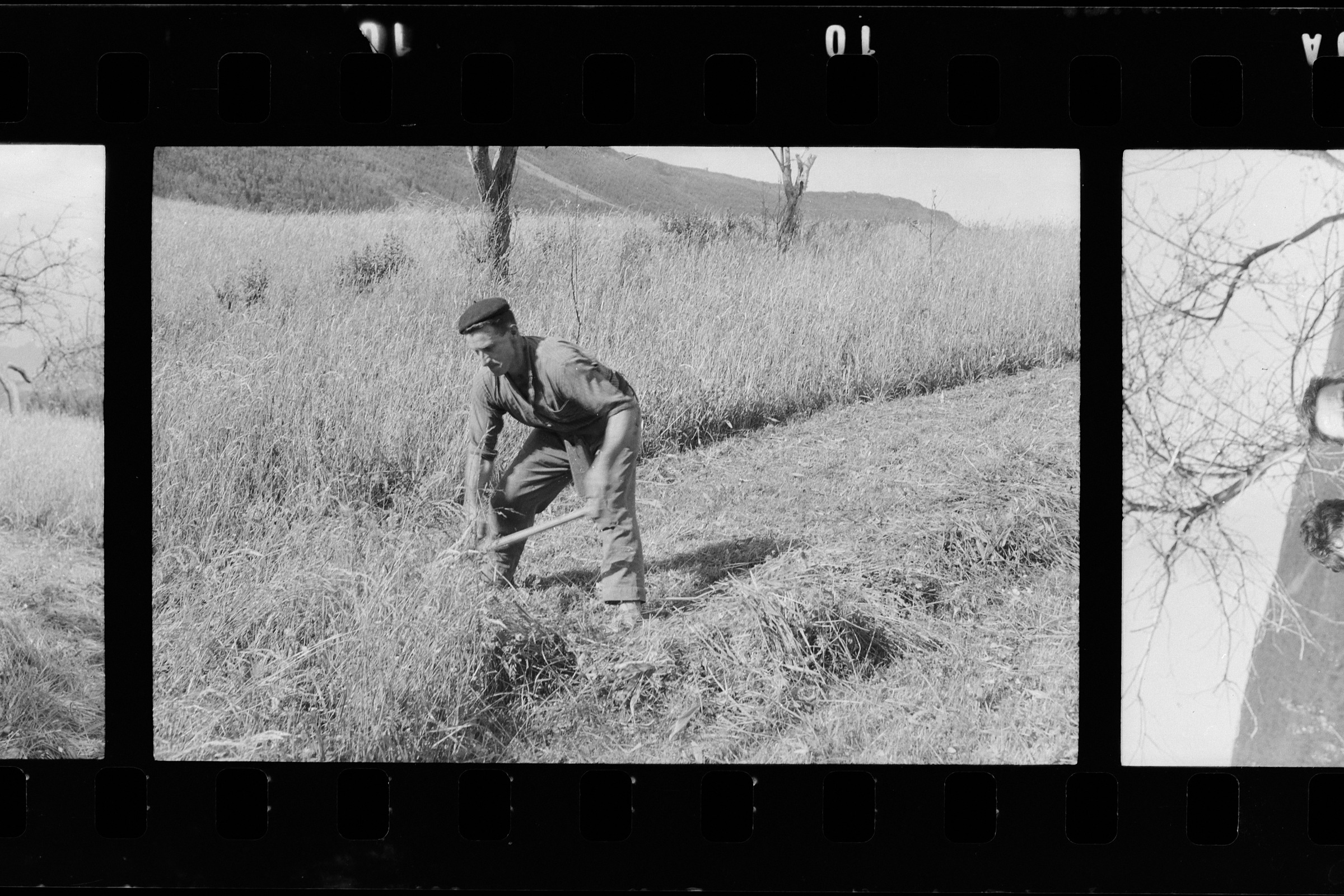 | Un hombre cortando hierba con la guadaña |