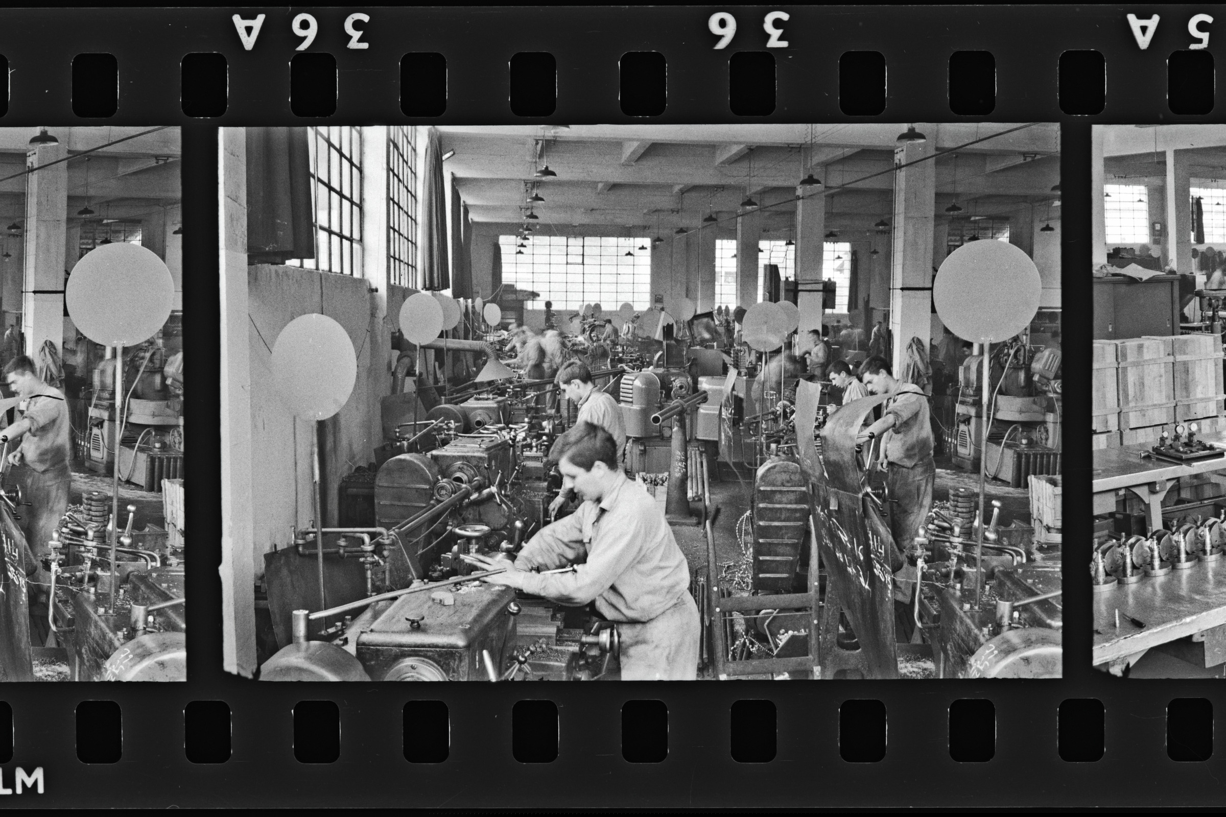 | Interior de la planta de Mayc, trabajando | Vergara textil 3-mayo-1962 |