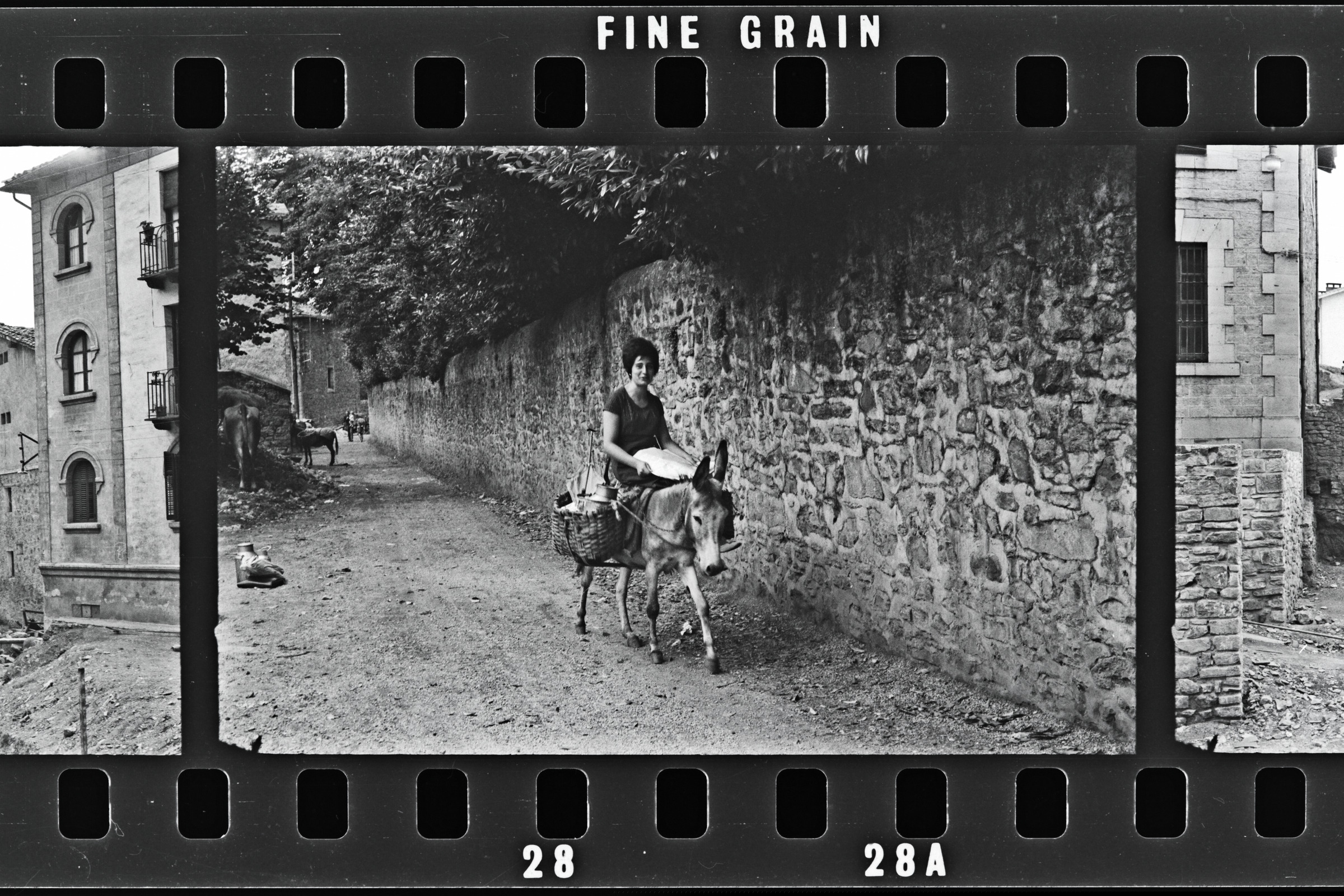 | Mujer encima de un burro en la calle Juan Irázabal | Fachadas MAYC Septiembre 1963 |