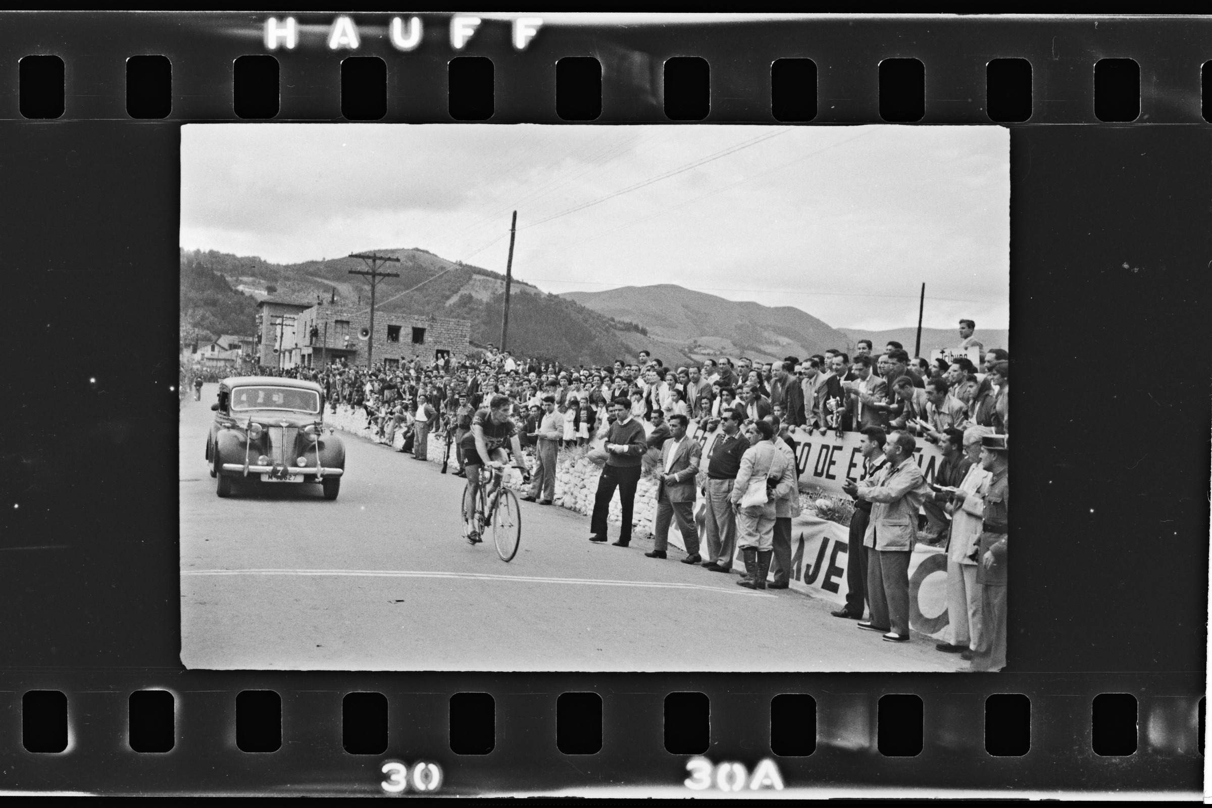 | Meta de la carrera ciclista: ciclista y coche | Campeonato de España fondo en carretera.- 5-8-956 |