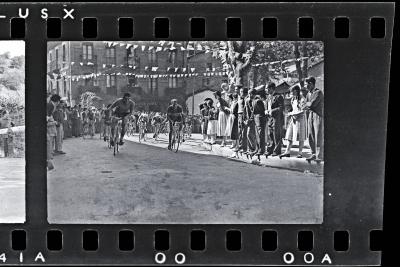 | Carrera cicilista de las fiestas de San Antonio: ciclista pasando de San Antonio hacia el Espolón | Ciclismo. San Antonio. Vencedor: Antonio Barrutia |