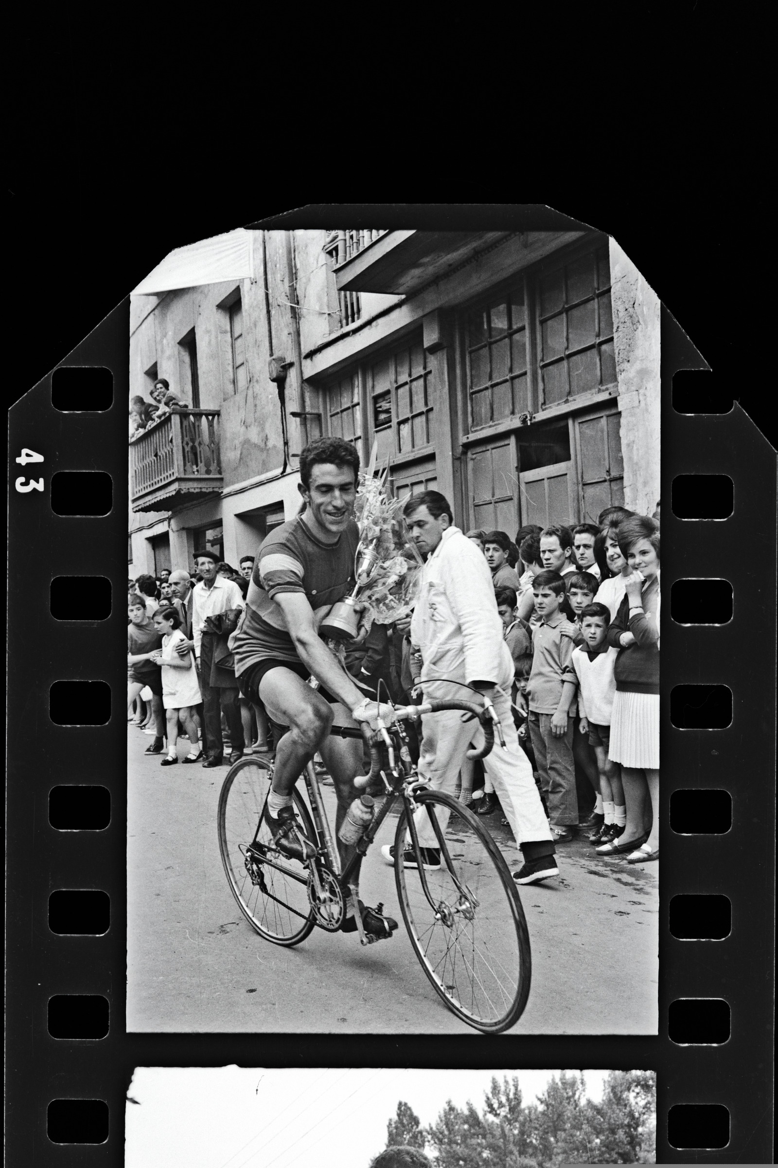 | Ciclista en paseo de honor con copa y ramo de flores | Ciclismo. Santa Marina. Vencedor: "Legarra" |