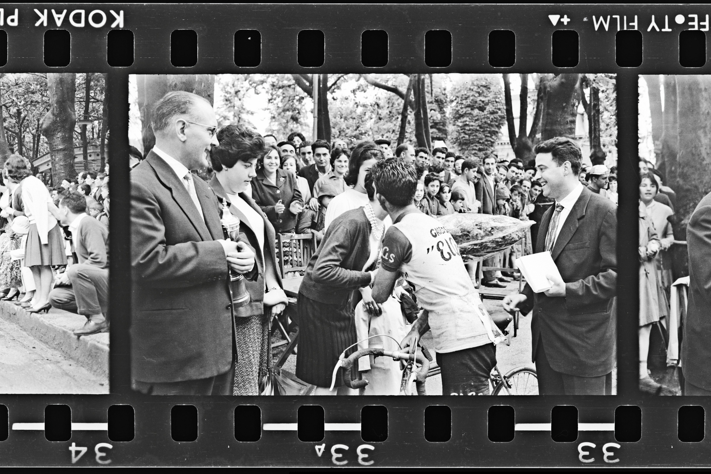 | Ciclista recibe el abrazo de la chica y el ramo de flores | Ciclismo. Pascuas de Pentecostés. Vencedor: Eusebio Velez |