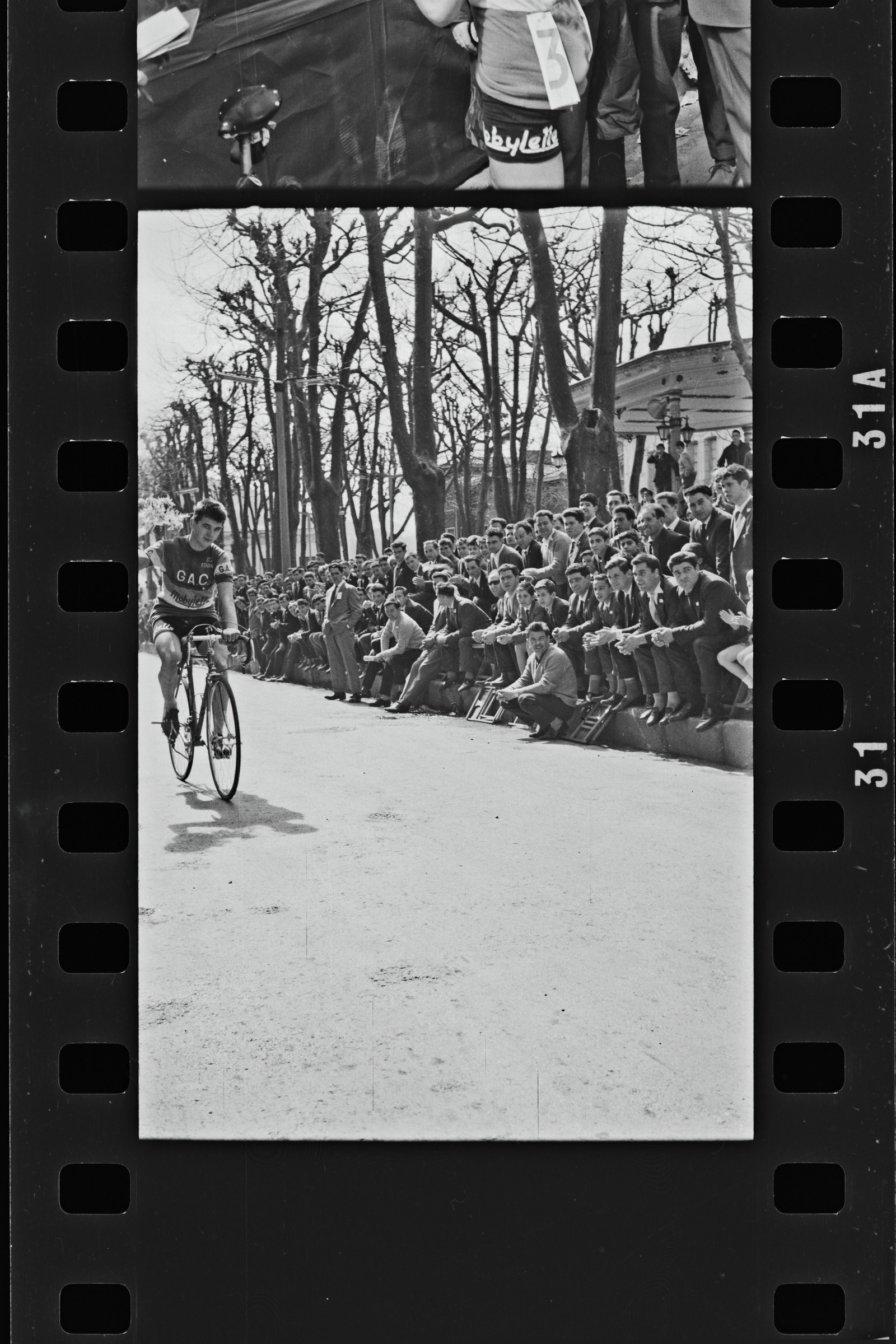 | Ciclista del equipo G.A.C. Mobylette en paso de honor con el ramo flores | Ciclismo. III Criterium ciclista Algodonera de San Antonio. Vencedor: Perurena |