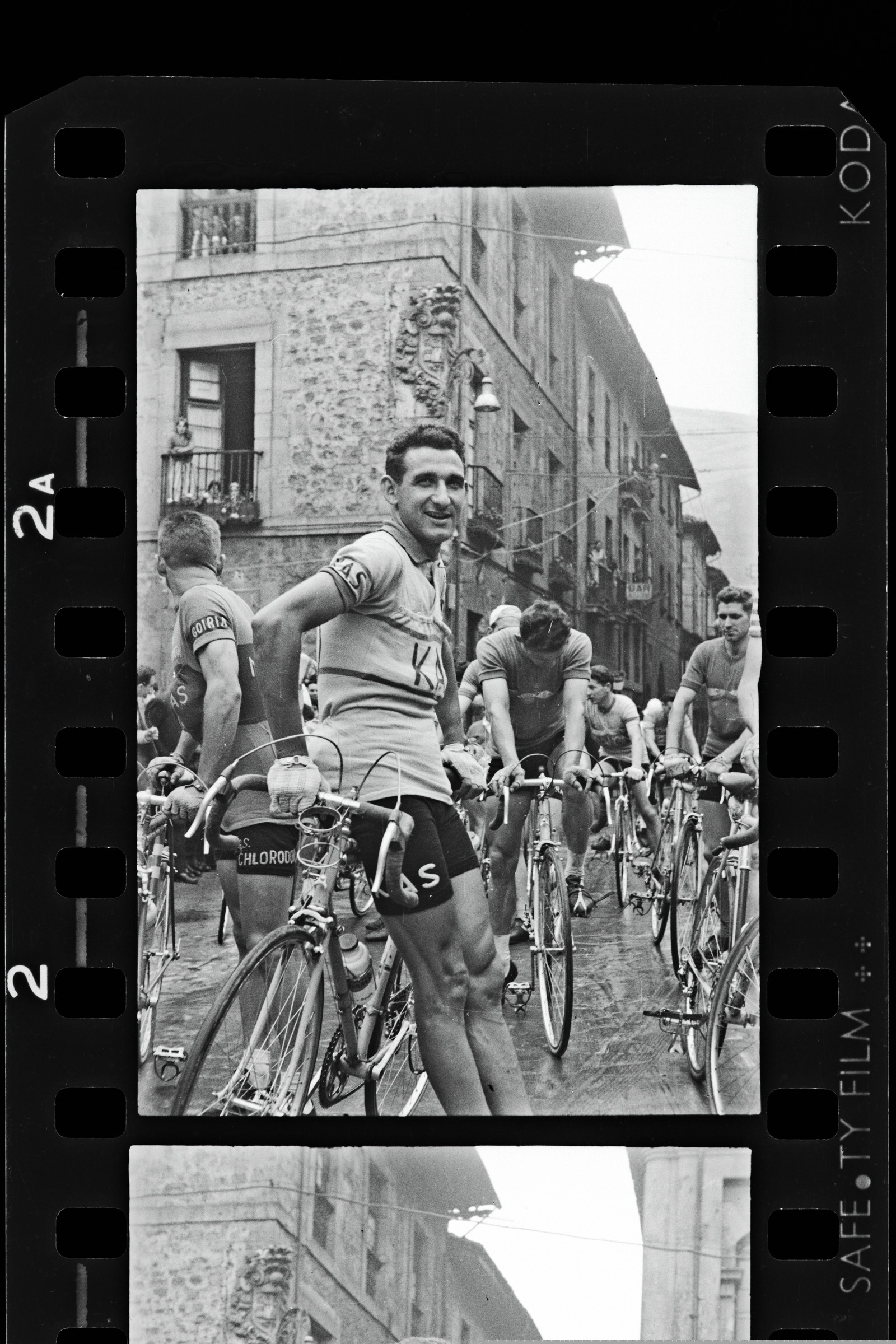 | Ciclistas esperan la salida de la carrera en la plaza San Martín Agirre; en primer plano el ciclista del Kas | Ciclismo. Pascuas de Pentecostés. Vencedor: |